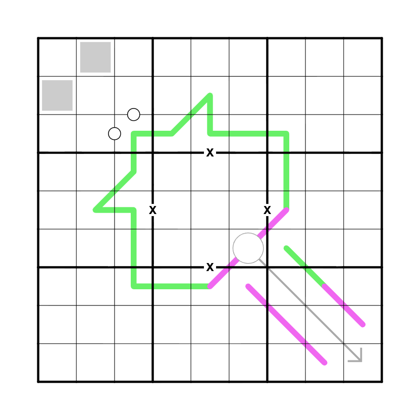 XV: Cells separated with an X must sum to 10.