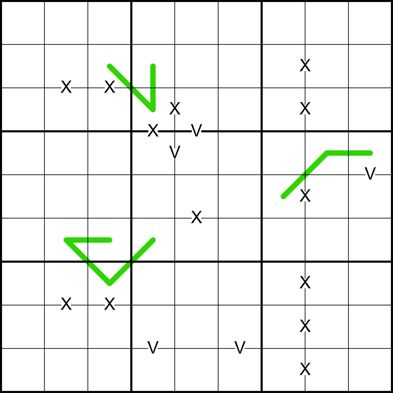All X's and V's are given.