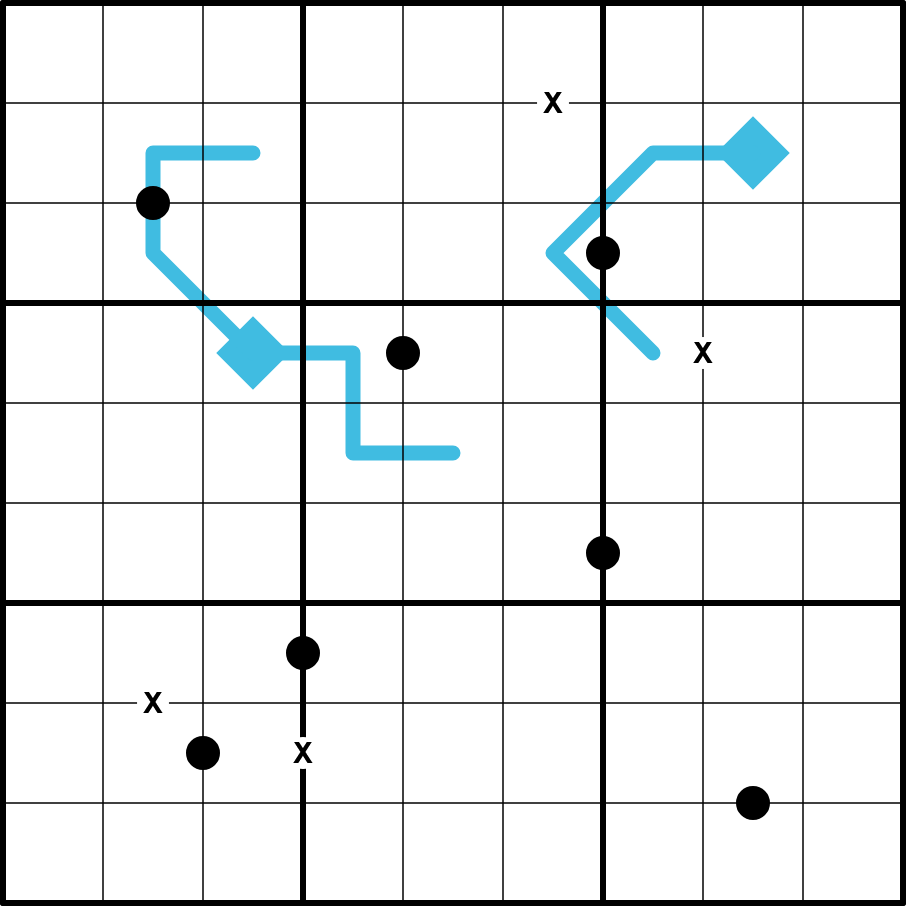 - Indexing - on a blue index line, the digit in the Nth cell along the line (starting from the diamond) indicates the position along the line where the digit N appears. Eg: 3214 would be a valid line; the 1st digit, 3, indicates that the 3rd digit is a 1, and so on.