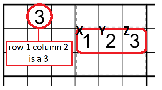 Digits X-Y-Z in a Coordinate Capsule indicate that row X column Y contains a treasure Z (see image right below).