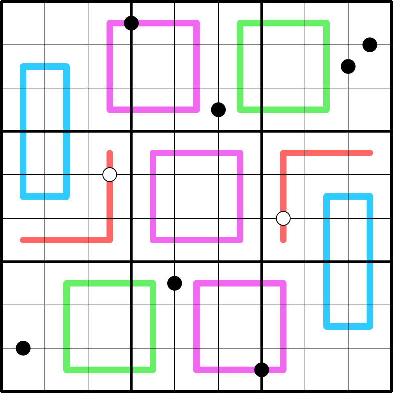 Normal sudoku rules apply. Lines and dots are standard colors and rules.