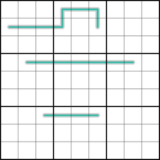 Modular lines: Each set of three adjacent digits along a line must be one each from the sets [147], [258], and [369].