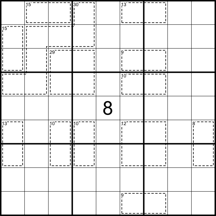 Killer: Digits in a cage do not repeat and sum to the indicated total.