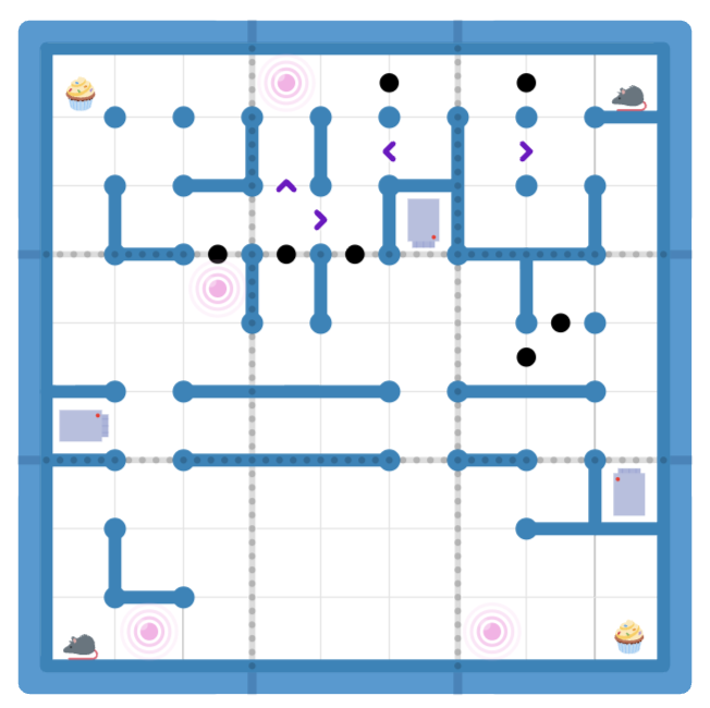 • AIM OF EXPERIMENT: Finkz and Phinx must both reach different cupcakes by finding a path through the maze. The paths must not visit any cell more than once, share cells, cross themselves or each other, or pass through any thick maze walls.