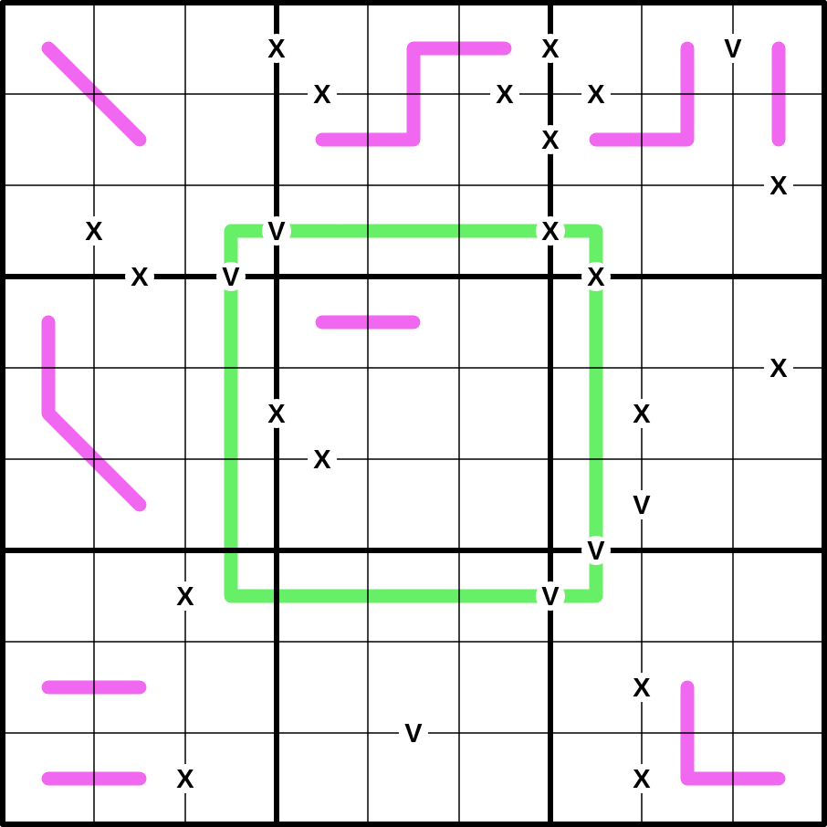 Extended Sudoku rules apply: Place the digits 0-9 in each row, column, and box, however there will be one digit in each that does not fit. This digit can vary between rows, columns, and boxes and needs to be determined by the solver.