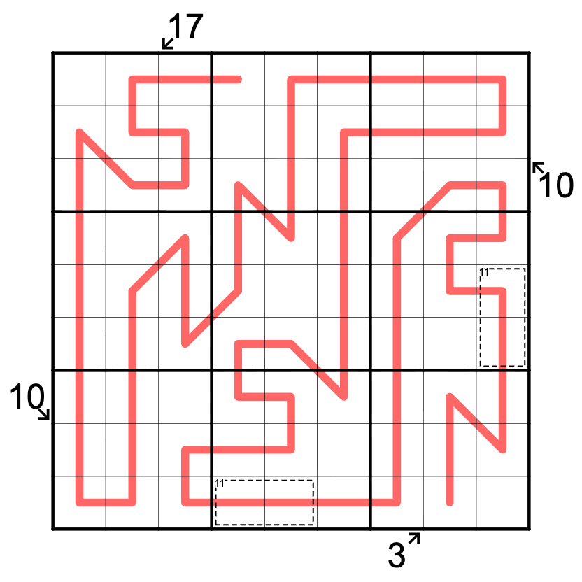 Parity Line: Along the red line, every pair of consecutive cells on the line must contain one odd digit and one even digit.