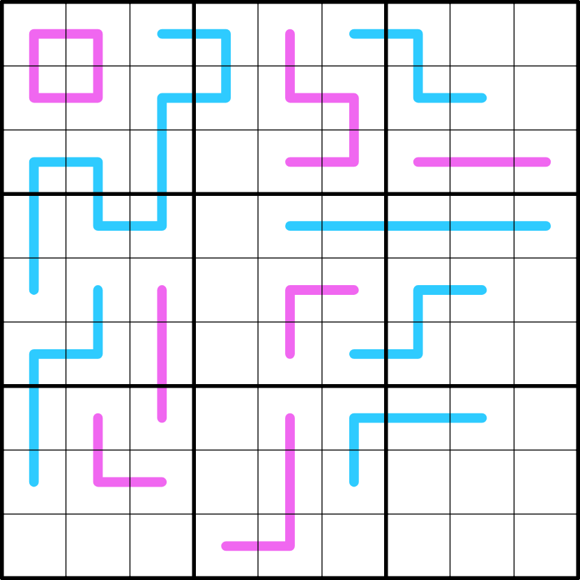 Renban: Pink lines must contain a set of consecutive, non-repeating digits in any order.