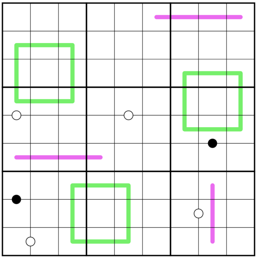 Renban: Digits along a purple line form a set of consecutive digits in any order.