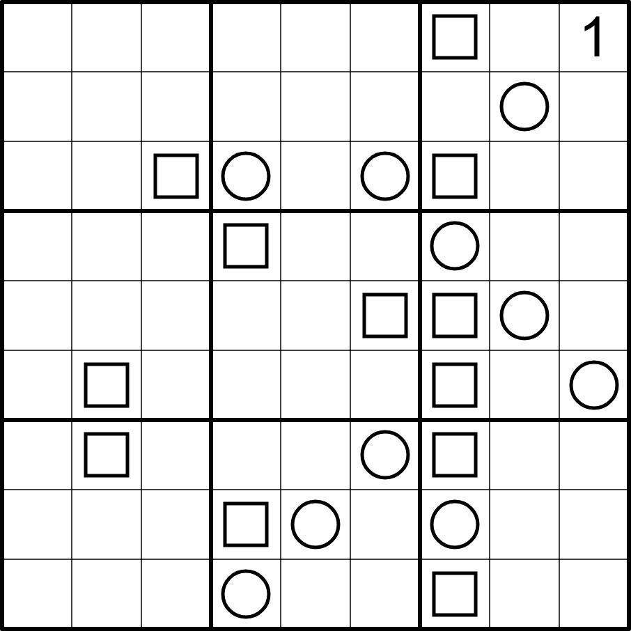 Digits in a square count the number of unique digits in the (up to 9) cells from the surrounding 3x3 centered on that square.