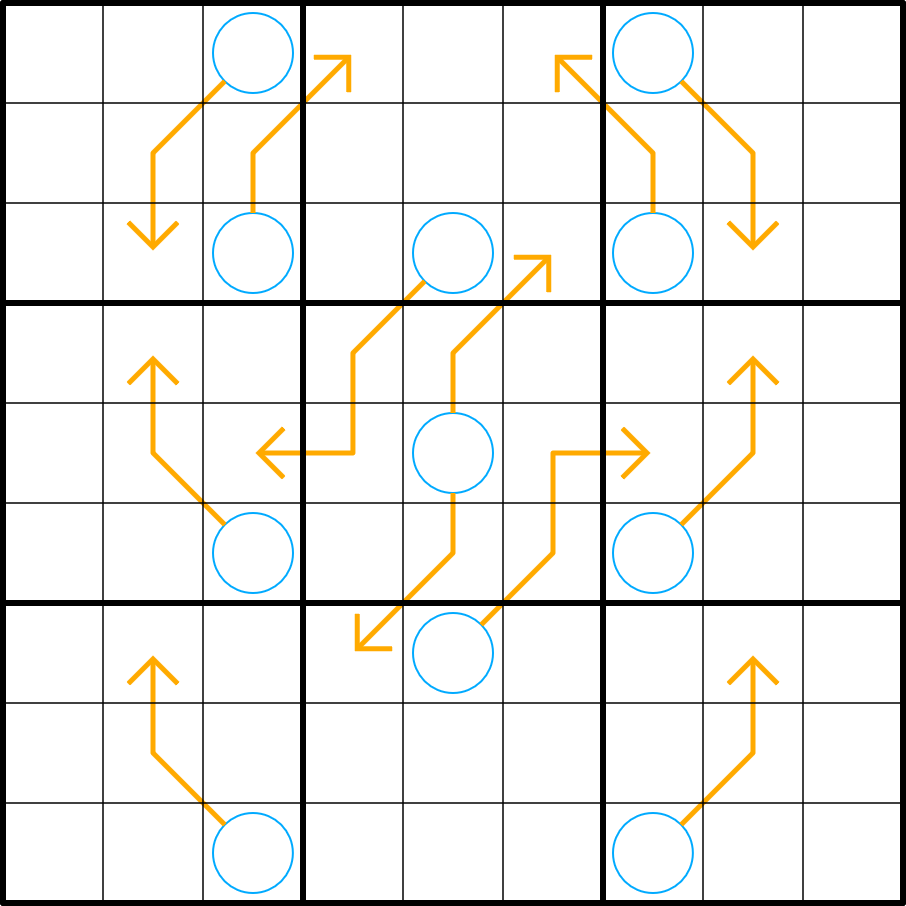 The sum of the digits along an arrow is equal to the digit in the connected circle.