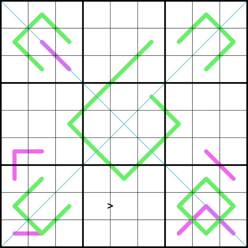 Renban: Digits along a purple line form a set of consecutive digits in any order.