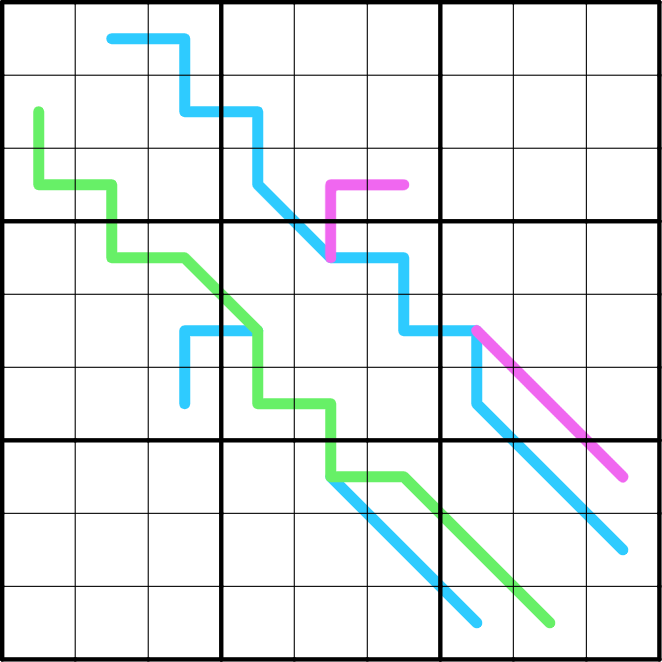 The negative diagonal (from r1c1 to r9c9) divides the grid into two non-overlapping parts of equal size (note: they do not include cells from the diagonal). If a digit appears N times in one part, it should also appear N times in the other part.