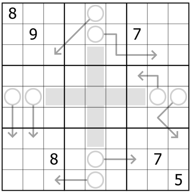 Place a digit 1-9 into each cell of the grid. Each row, column and boldly outlined 3x3 box must contain every digit 1-9 once.