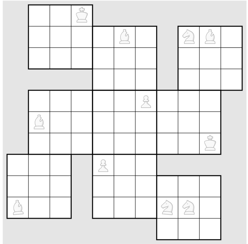 I think the difficulty kind of comes from a "misdirect". This puzzle looks like one of juggler's chess-piece puzzles (which are kind of a variant of an arrow puzzle). And so I kept treating it as such, thus the hour of false starts. But in fact the chess constraints are not the key here -- the grid shape is. This puzzle is much closer to juggler's Kurtosis or Mezzanines, than to Summer Knights or Cloister. Once I realized that, and properly appreciated the implications of the grid shape, the puzzle came together, and was really a 3.5*. But before that, it was purely impossible.