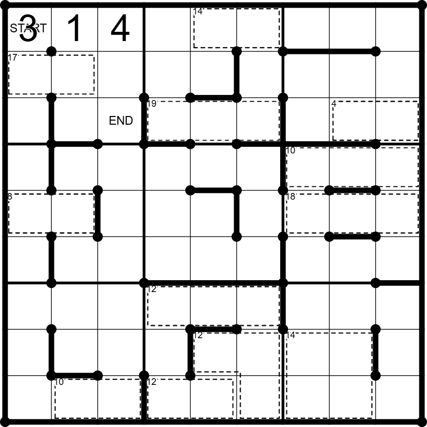 Cages: The digits enclosed by a cage sums to the number indicated at the upper left corner.