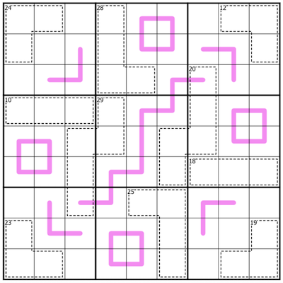 Digits in cages do not repeat, and sum to the value shown.