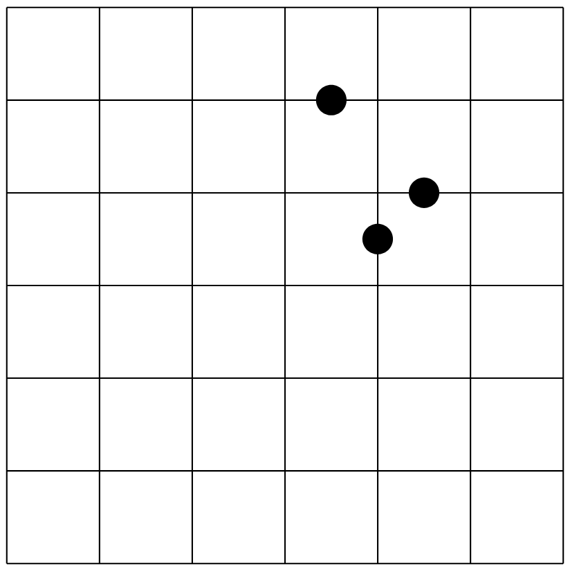 • A circled cell never sits orthogonally adjacent to a 6.