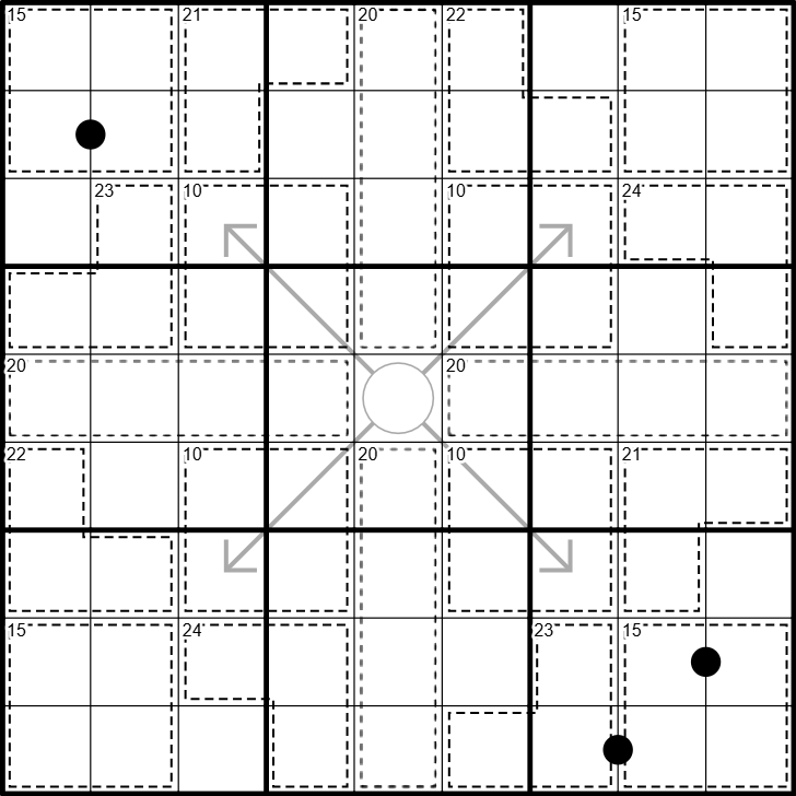 • Digits in cells joined by a black dot are in a 1:2 ratio. (i.e., one digit will be double the other). Not all dots are given.