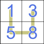 Nabner: Digits along a golden line form a set of non-repeating non-consecutive digits in any order (i.e., any two digits on a line must differ by at least 2).