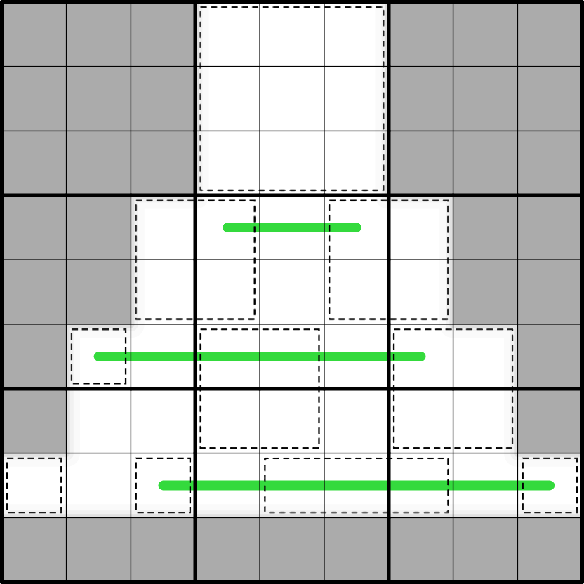 Green Line: The green line is NOT the typical German whisper line. The totals of adjacent cages along the green line must have a difference of at least 5.