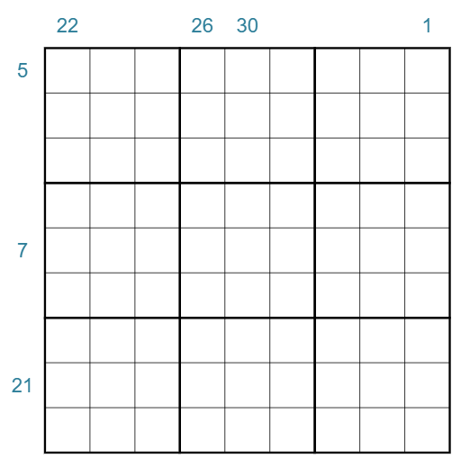 Pointer Sums: A clue outside the grid gives the sum of all pointer cells in that row or column.
