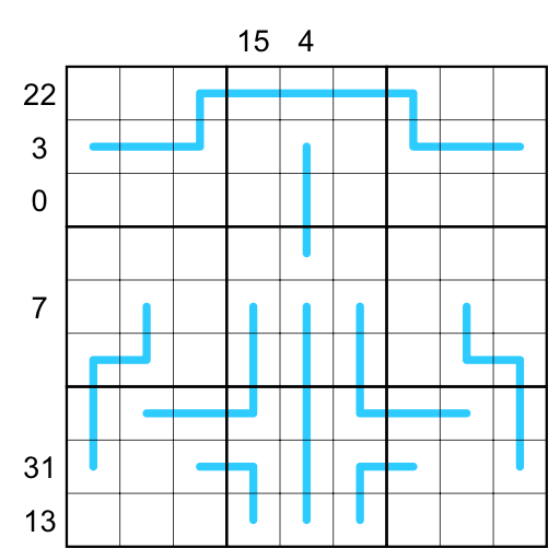 Clues outside the grid give the sum of all the digits between the 1 and 9 in that row or column.