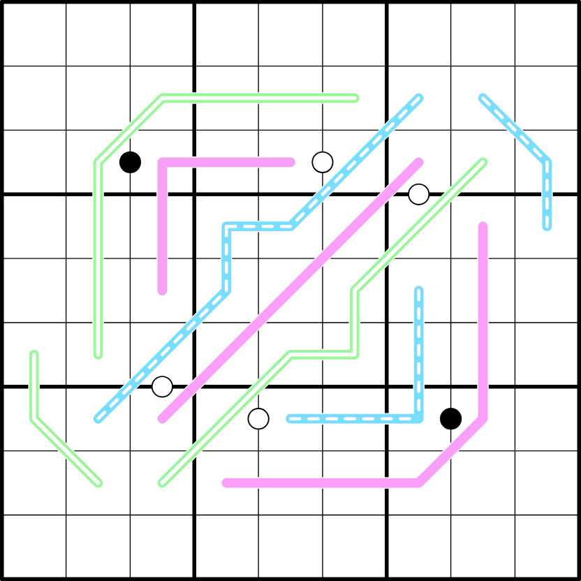 Renban Line: Solid pink lines contain an unordered set of consecutive values, without repeats.
