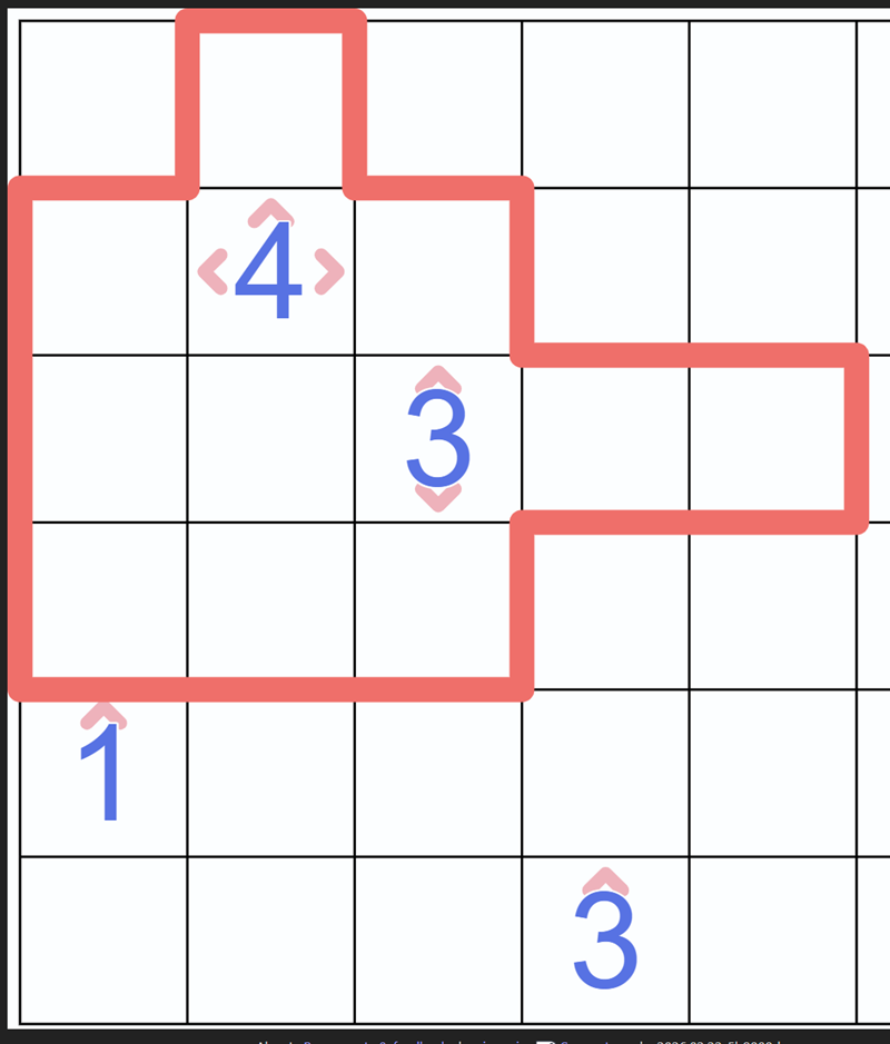 - For example, if a cell has two arrows and a 3 as its digit, each arrow sees a path piece 1 cell away (making 3 cells total including the arrow cell), and in the non-arrow directions any path piece must be at least 2 cells away.