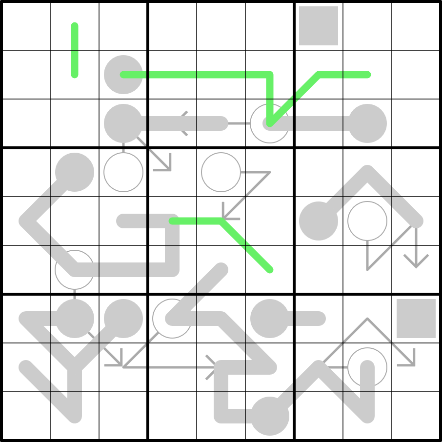 German Whispers: Adjacent digits on a green line must have an absolute difference of at least 5.