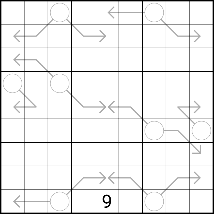 Arrows: Digits along arrows must sum to the number in the attached circle.