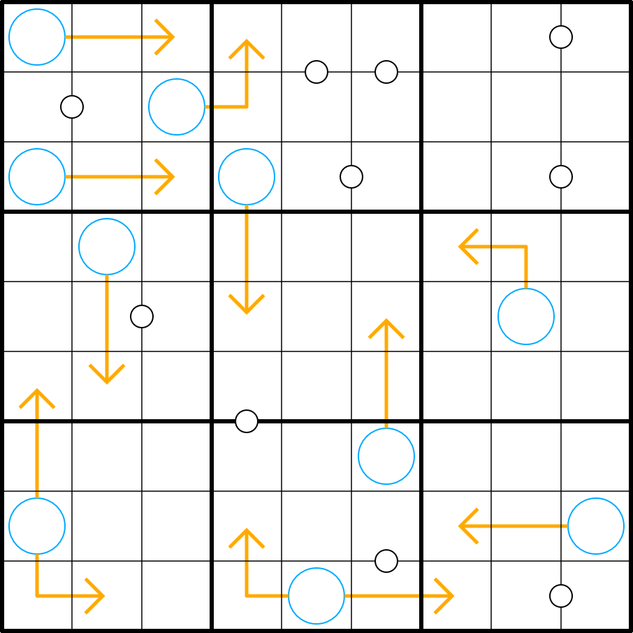 The sum of the digits along an arrow is equal to the digit in the connected circle.