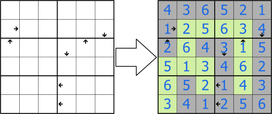 A digit in a cell with an arrow counts the total number of shaded cells seen in the direction of the arrow (not counting the cell itself).