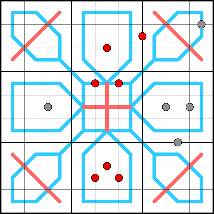 Gray Dots: Digits in cells connected by a gray dot are either consecutive or in a 1:2 ratio (or both).