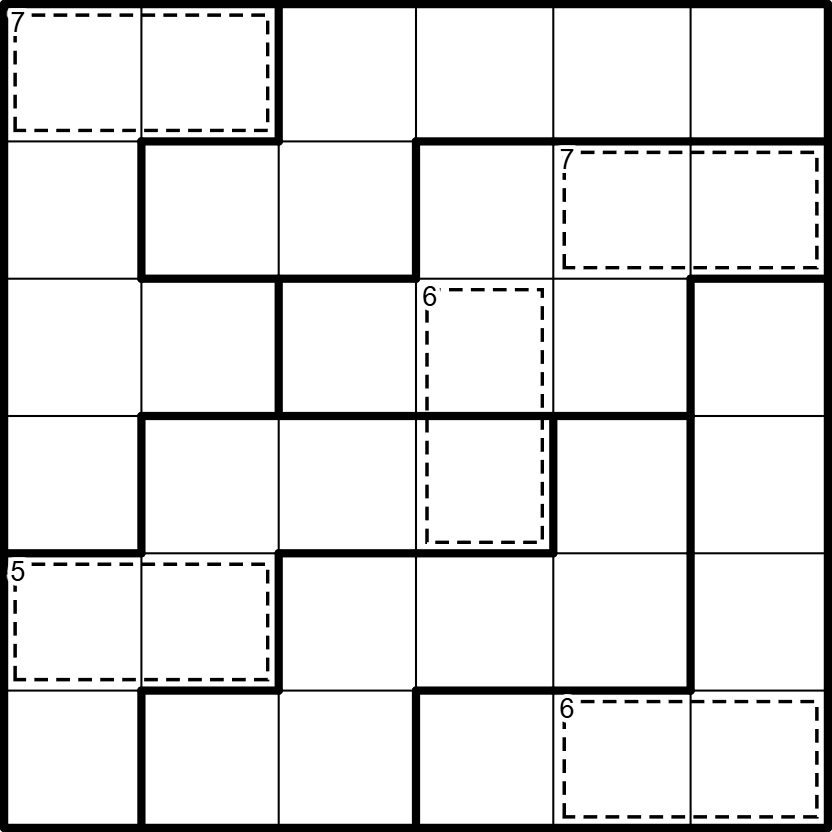 • Irregular Sudoku: Place the digits 1-6 once each in every row, column, and irregular region.