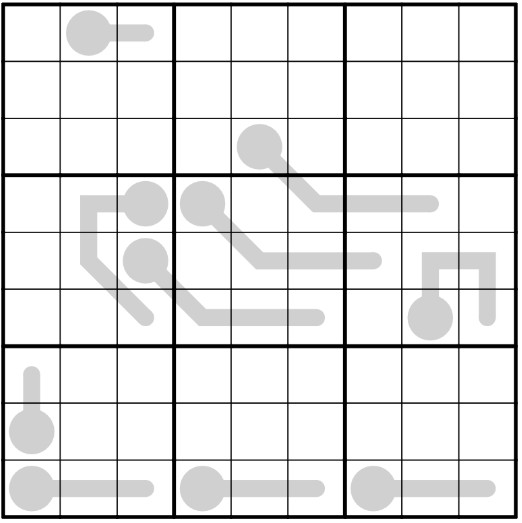 Thermometer: digits increase, starting from the bulb.