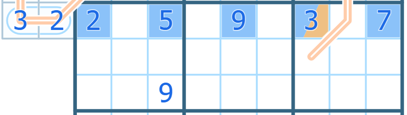 Example of a valid Periodic Sum for row 4, which includes a Copycat Cell in r4c7 copying the value 9 from r6c3: