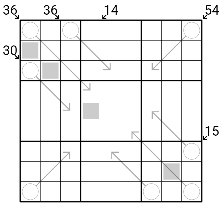 Arrows: The digit in an arrow’s circle is equal to the sum of the digits on the attached arrow. Digits are allowed to repeat along the arrows as normally allowed by other rules.