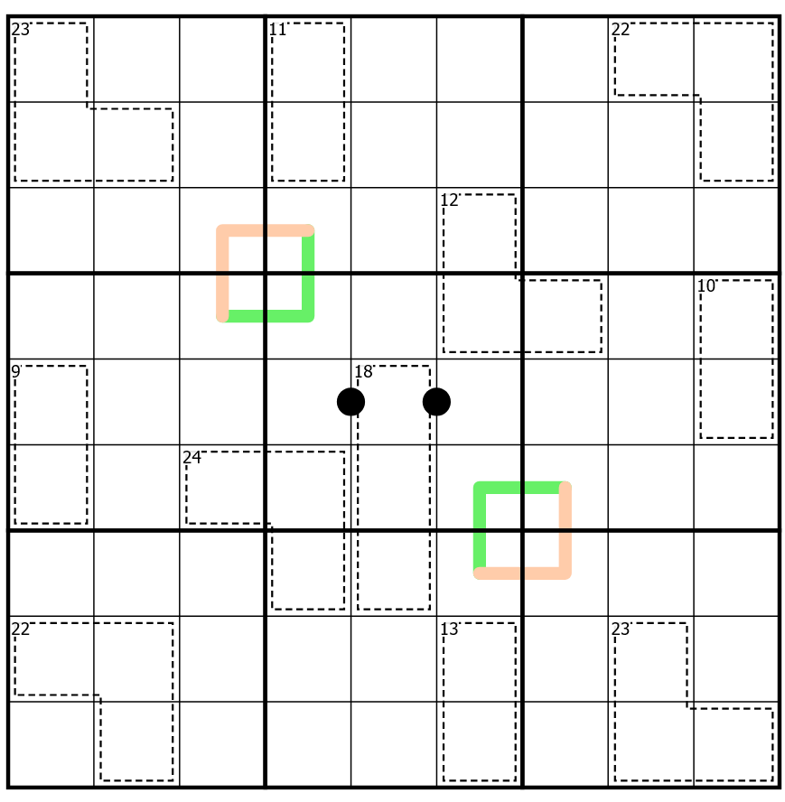 Sujoyku and I have been puzzle buddies for almost two years now, but this was the first time we actually set a puzzle together. The prompt on the Sudoku Stream Team server this week was to set a puzzle with a partner, where the puzzle reflects both your styles/preferred constraints. I think we fit the task pretty well!