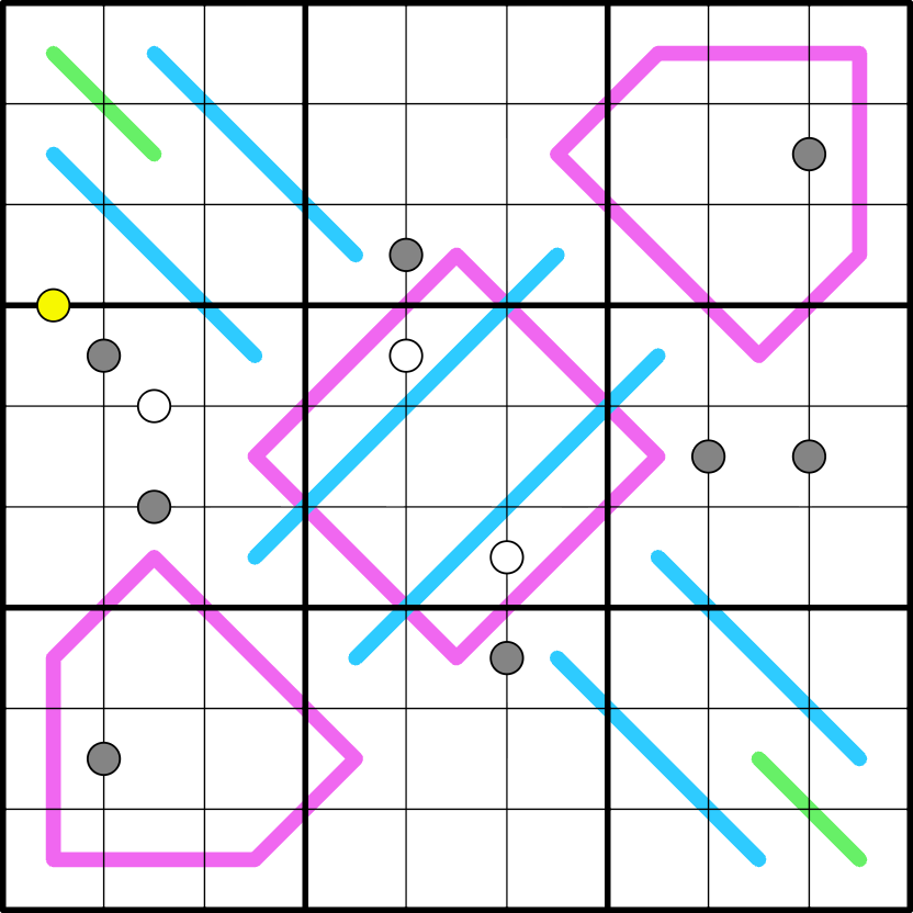 Renban: Digits along a purple line form a set of consecutive digits in any order.