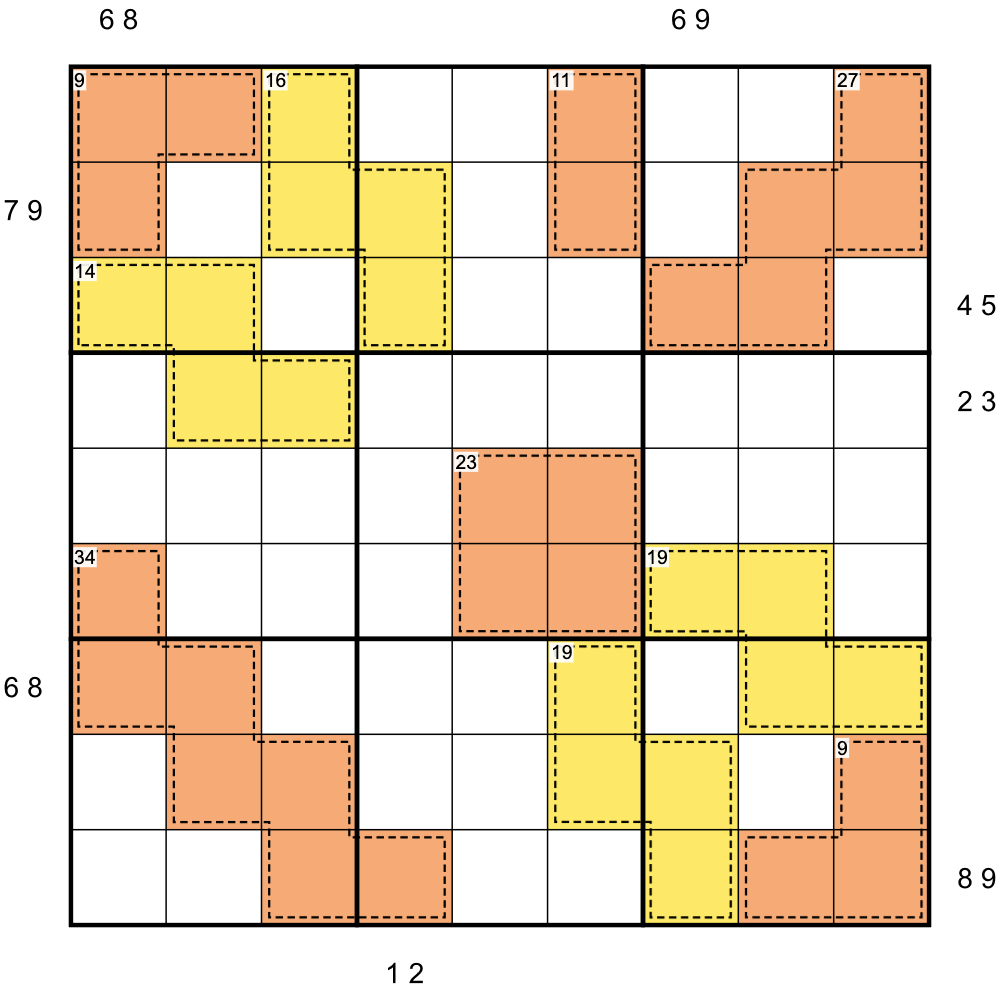 Within a cage, digits must not repeat and they sum to the small number in the top left corner.