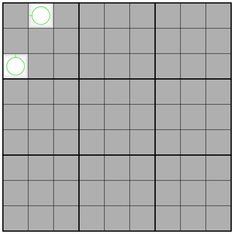 LINES: All lines move orthogonally and end in circles on either end. Lines do not cross, branch, or share cells.