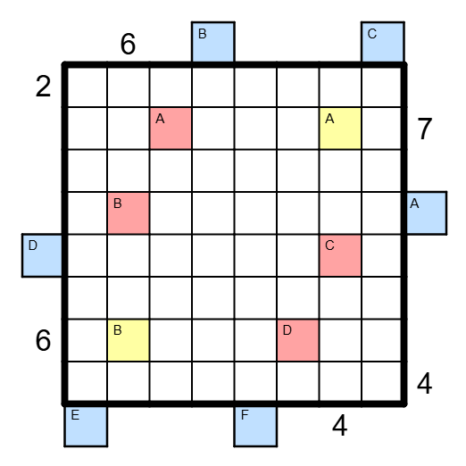 Die Hinweise geben dabei an, wie viele Häuser in der Zeile bzw. Spalte aus der entsprechenden Richtung gesehen werden können; ein Haus kann gesehen werden, wenn alle Häuser davor kleiner sind.
