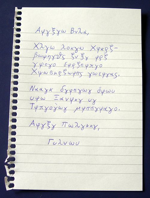 Erst heute, als ich meinen Rucksack aufräumte, fielen mir diese Notizen wieder in die Hände. Neugierig betrachtete ich sie. Es sah aus wie Geheimschriften und Rätsel, aber eine Adresse konnte ich nicht finden. Leider habe ich im Moment keine Zeit, mich weiter darum zu kümmern; vielleicht kann das ja jemand von euch übernehmen?
