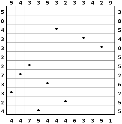 Solution code: The number of knicks in the loop; row by row, top to bottom. (Example: 40244444)