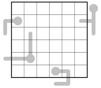 Tragen Sie in jedes Feld ein Hochhaus der Höhe 1 bis 6 so ein, dass in jeder Zeile und jeder Spalte jede mögliche Höhe genau einmal vorkommt. Hinweiszahlen am Rand geben jeweils an, wie viele Häuser in der entsprechenden Zeile oder Spalte aus der entsprechenden Richtung gesehen werden können; niedrigere Hochhäuser werden dabei von höheren verdeckt.
