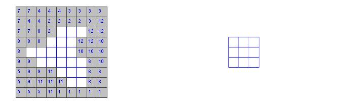 Alle Klappungen und Drehungen sind möglich. Kein Stein darf doppelt gelegt werden. Insgesamt gibt es 21 Lösungen.