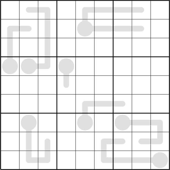 Dieses Rätsel ist ein klassisches Thermo-Sudoku. Die Ziffern in einem Thermometer sind vom Kolben, dem großen grauen Kreis, aus aufsteigend.