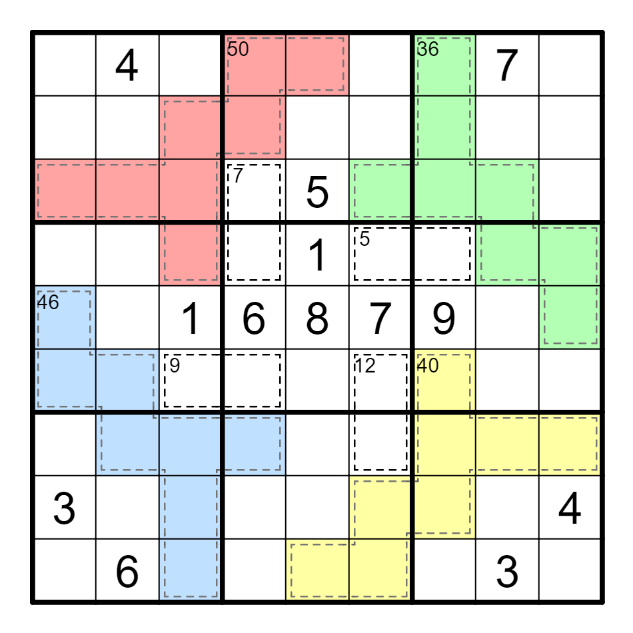 F-Puzzle link (does NOT consider extra rule and is missing the colored cage sums)