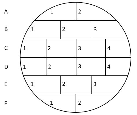 Vorhinweis: Kein Buchstabe berührt mit einer Seite oder Ecke seines Feldes einen im vollständigen Alphabet benachbarten Buchstaben.