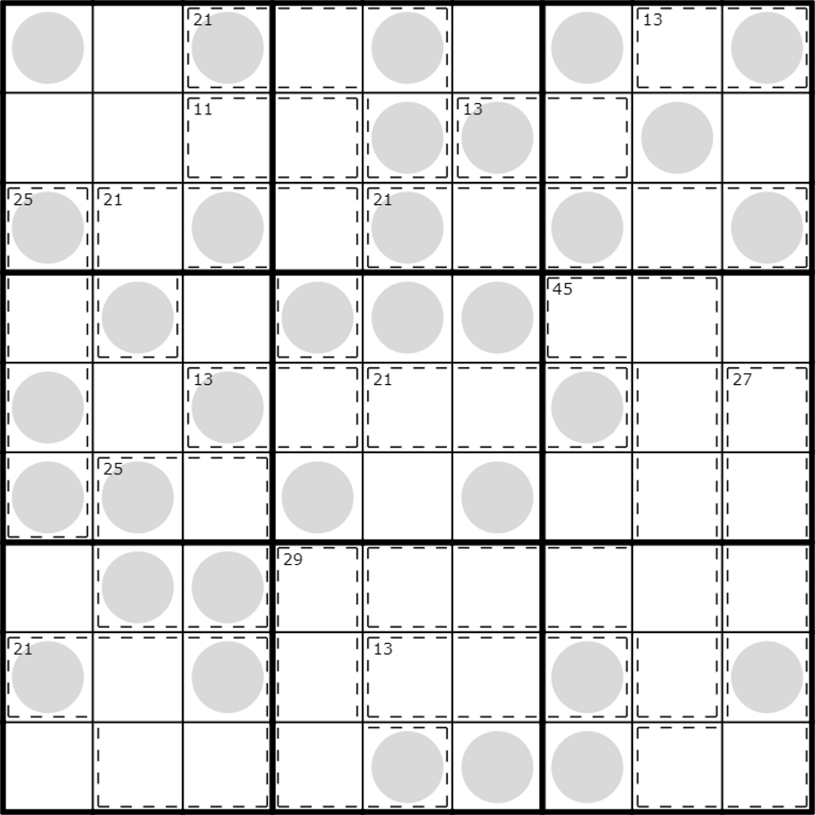 Ziffern in Käfigen müssen sich zu der Summe summieren, die in der oberen linken Ecke des Käfigs angegeben ist. Ziffern können in Käfigen nicht wiederholt werden.